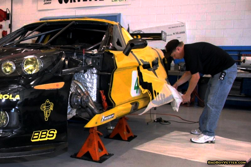 Check out the pictures we got from Chris Ladouceur at Pratt & Miller of the guys from Competition Graphics turning the original badboyvettes into... badboyvettes... badboyvettes......